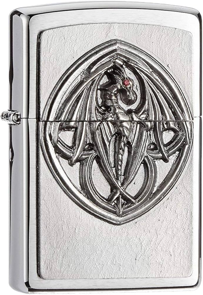 De Zippo Dragon Eye Emblem aansteker is geborsteld...
