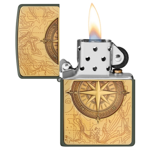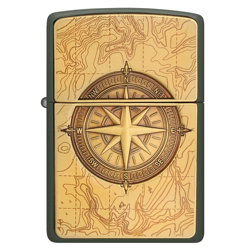 Zippo aansteker Kompas. Deze Zippo aansteker heeft een hoogglans zilveren afwerking en aan de...