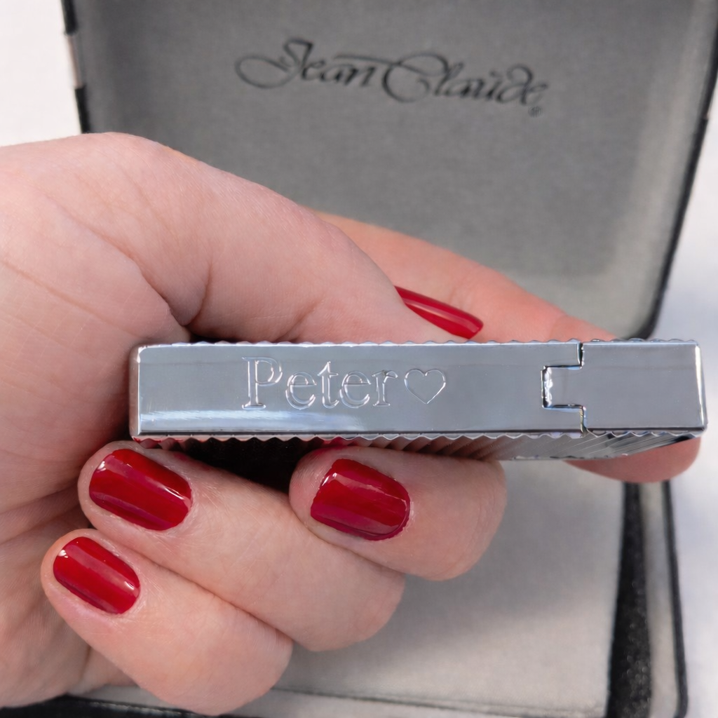 Op zoek naar een elegante aansteker om te graveren? Deze stijlvolle Jean Claude vuuraansteker in chroom uitvoering combineert een strak design met betrouwbare kwaliteit. Dankzij de luxueuze afwerking en het moderne lijnenspel heeft deze aansteker een tijdloze uitstraling – ideaal voor dagelijks gebruik of als persoonlijk cadeau.